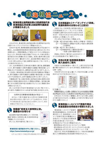 詳しくは9月発刊予定の『東海税協だより』をご覧ください。また総代・代議員の方々には別途「総代通信」をお送りします。